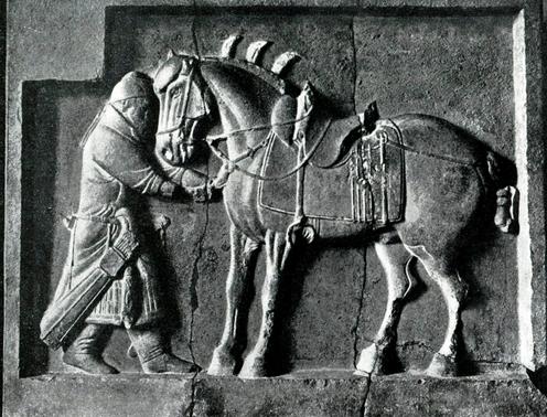 Guerrero que extrae una flecha del pecho de un caballo herido. Relieve del enterramiento del emperador Taizong en Xi’an, año 637. Foto del sitio web artyx.ru.