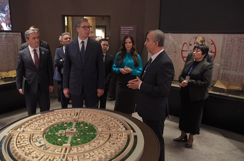 El presidente de Serbia, Aleksandar Vučić, durante su visita oficial a Taskent, recorrió el Centro de Civilización Islámica (CCI) en Uzbekistán, según informó el servicio de prensa del Centro.